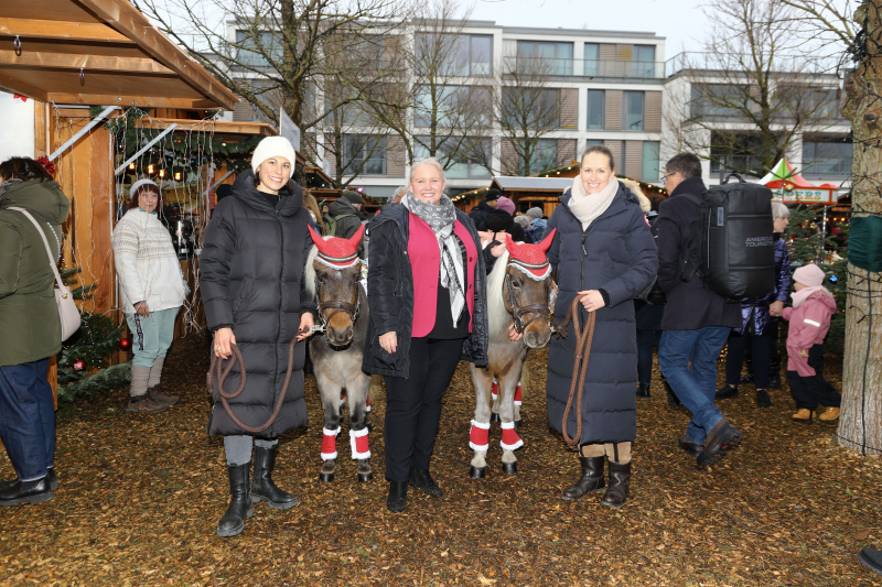 Viktoria Godau, Bürgermeisterin Tina Haltermann, Elisabetha König mit ihren Weihnachtsponys Betty und Rosi